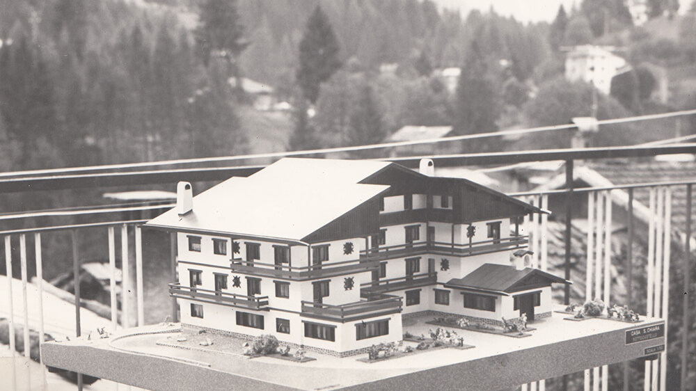Aldina individuò un’area fuori dal paese di Sottocastello di Pieve di Cadore, ma vicina. E dopo averla acquistata, pensò con alcuni amici alla costruzione della casa secondo il progetto dell’Ing. Franco Manaresi.
