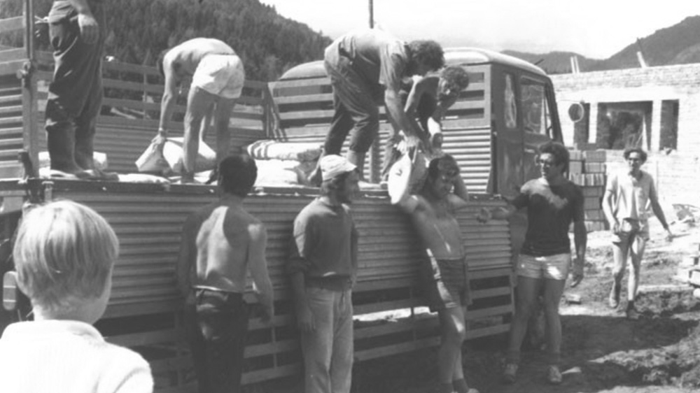 I muratori erano due: ad essi si affiancarono molti giovani volontari, provenienti da varie regioni italiane e anche dall’estero, che offrirono la loro collaborazione con i “campi di lavoro”.